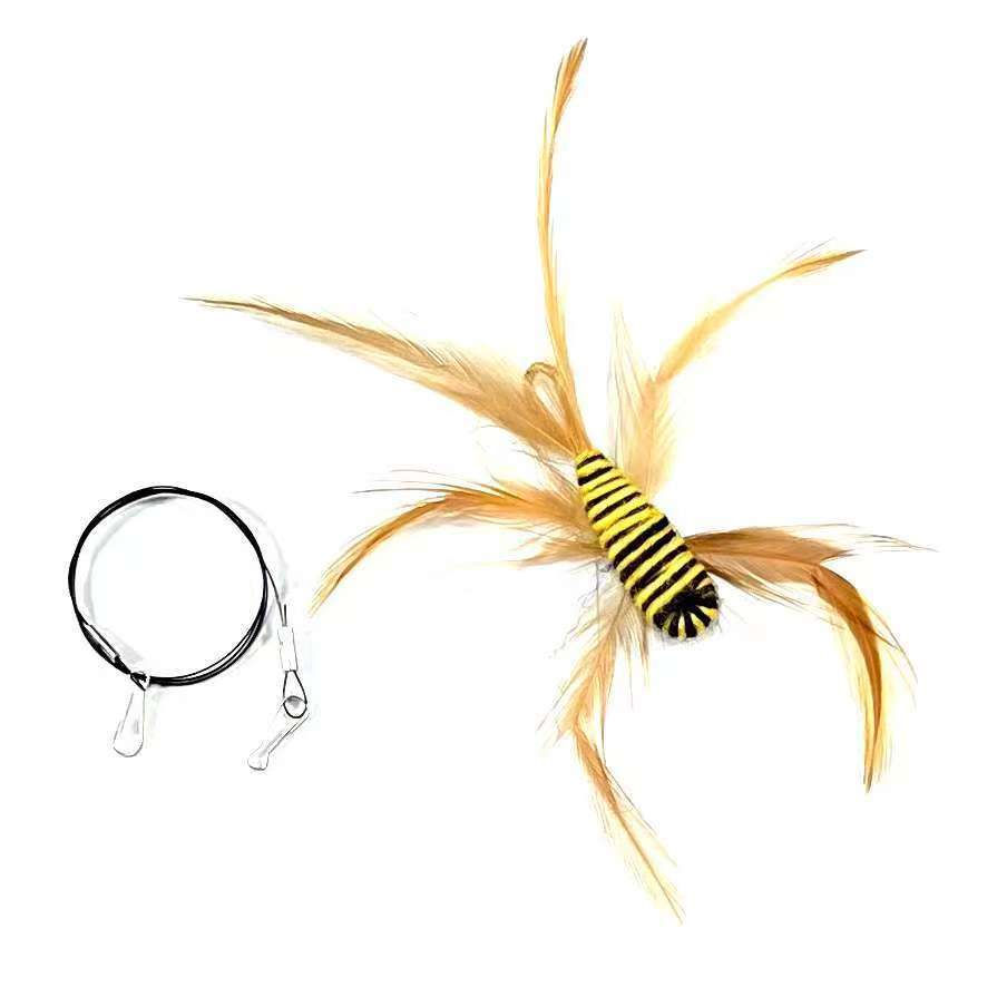와일드 버그 고양이 장난감 막대 교체용 머리 – 리얼 곤충 디자인, 긴 끈 포함