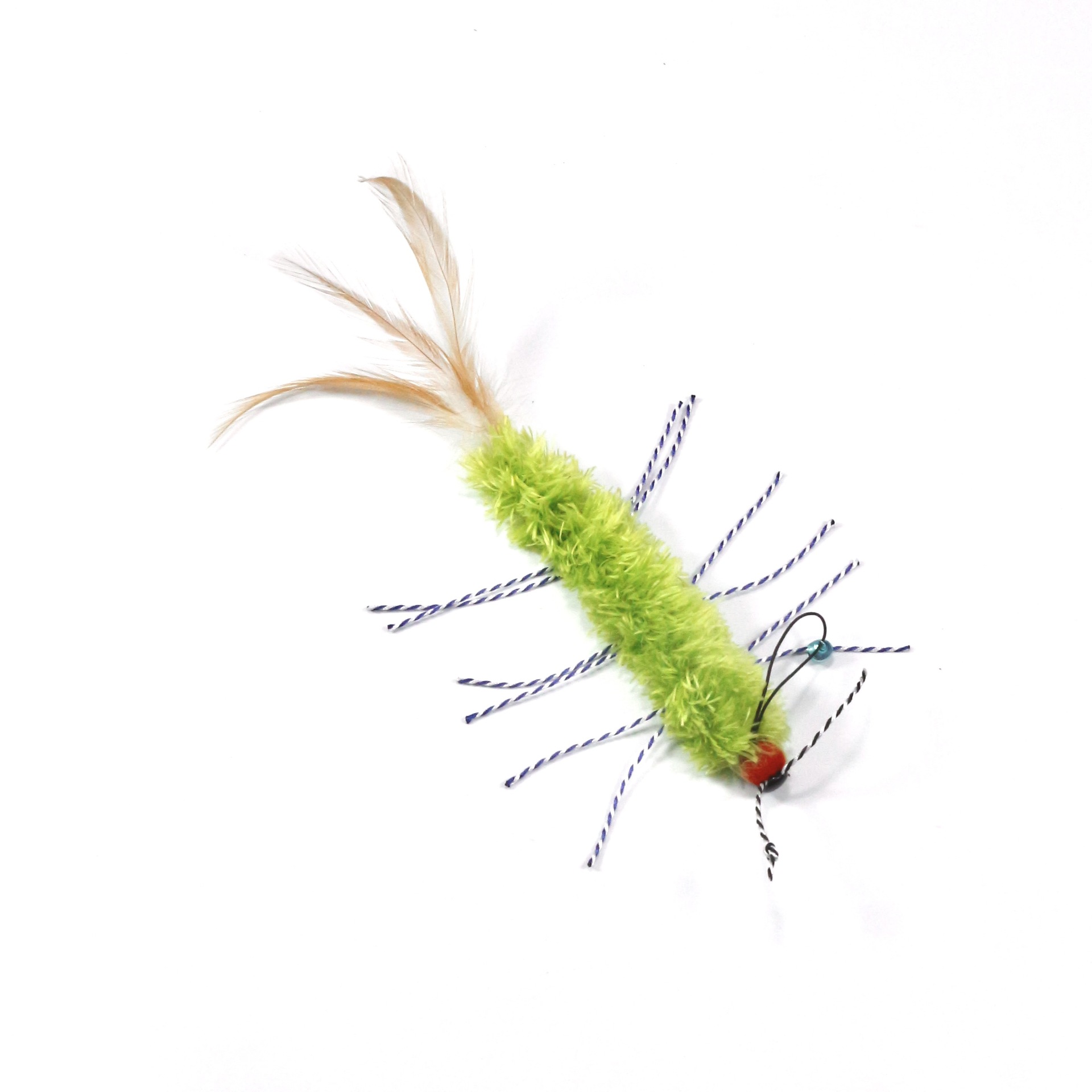 긴 더듬이와 다리, 튼튼하고 흔들리는 털실 몸체, 그리고 무염색 깃털 꼬리로 시각적·촉각적 자극을 동시에 제공합니다.