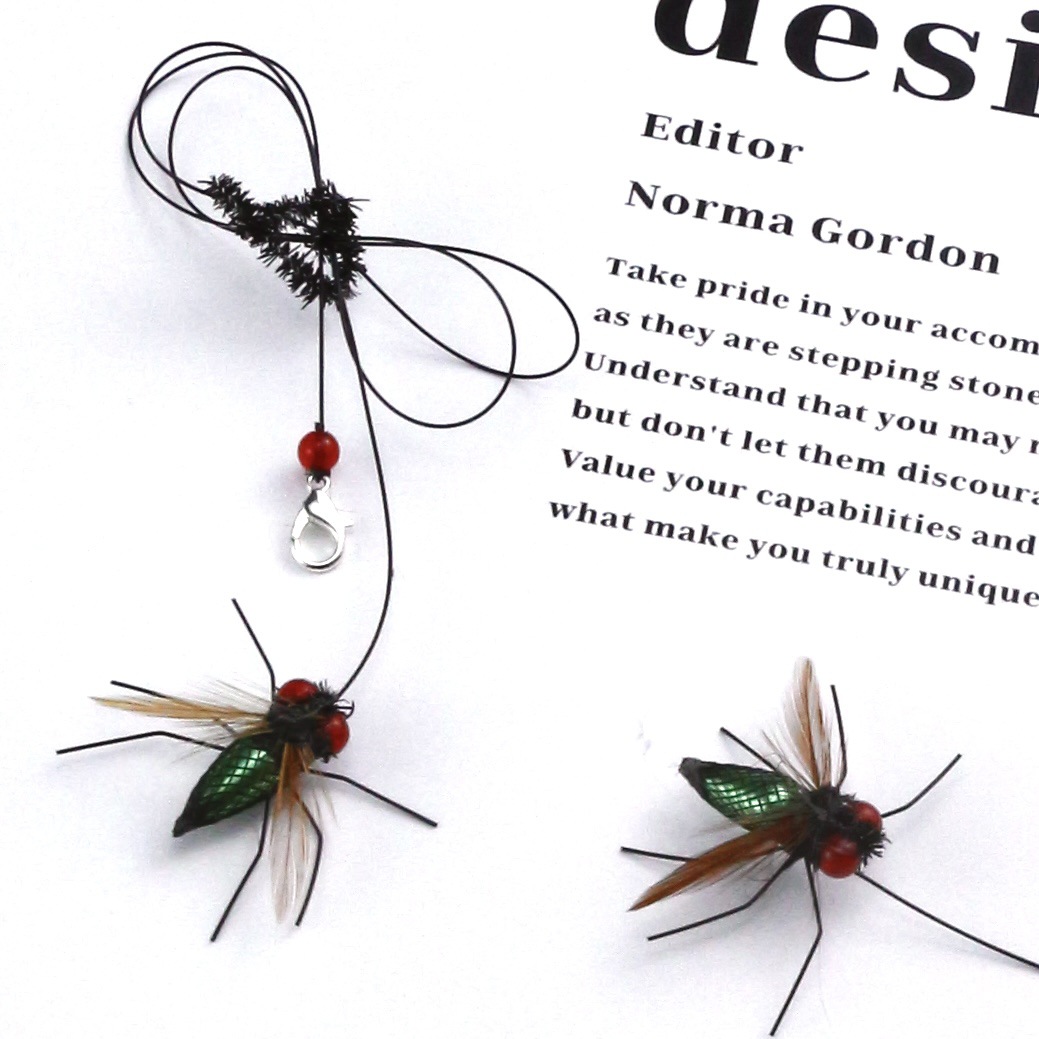 녹색 파리 고양이 장난감 막대 교체용 머리 – 업그레이드 리얼 곤충 디자인