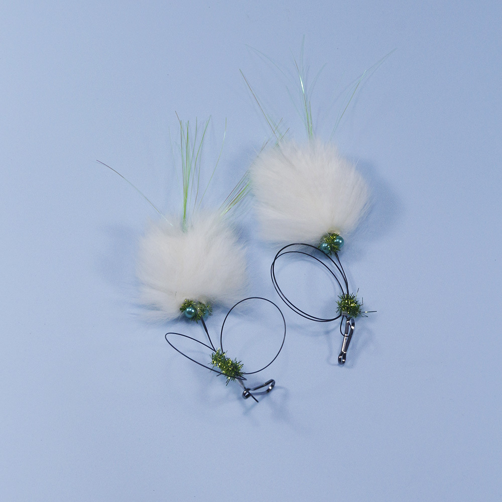 고양이의 사냥 본능을 자극하는 천연 토끼털 날벌레 스타일 고양이 장난감 교체 헤드입니다.