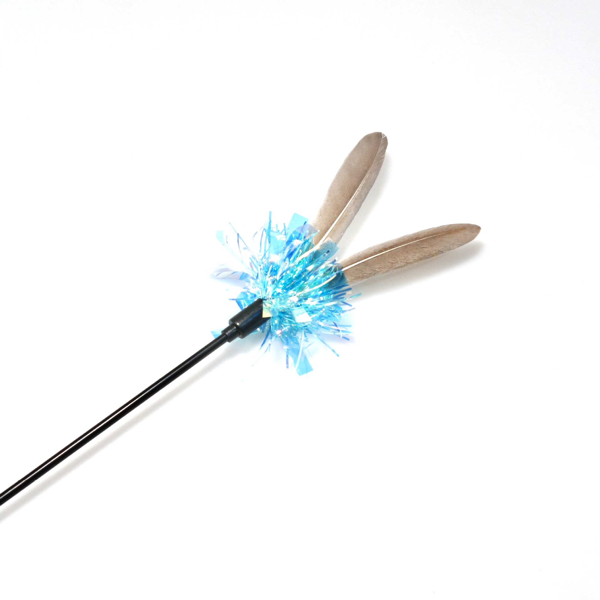 고양이의 시각과 호기심을 자극하는 토끼 귀 스타일 고양이 장난감 막대입니다.